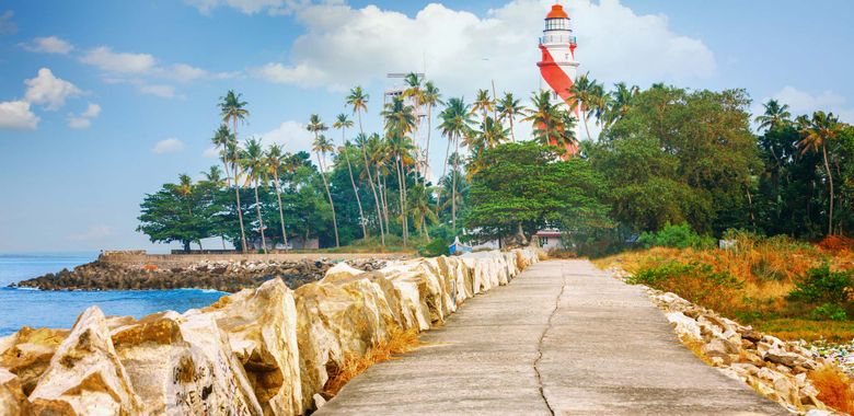 Kerala doesn't announce itself the way Rajasthan does, with forts on every ridgeline and camels blocking traffic. It works on you slowly — through the smell of cardamom drying on a tarpaulin beside the road, the slap of a coconut being split for you at a roadside stall, the particular silence of a tea plantation at six in the morning when the mist hasn't yet burned off and the pickers are already waist-deep in green. Munnar sits high in the Western Ghats, its hillsides carved into pale-green terraces that roll away from you in every direction, cool enough to need a light jacket at dawn. Thekkady, lower and wilder, is the domain of Periyar — a lake surrounded by deciduous forest where elephants come to drink and the air smells of wet earth and pepper vine. Kovalam is the full stop at the end: a pair of crescent beaches on the Arabian Sea, the lighthouse blinking at the southern tip, fishermen pulling in their catch before breakfast while the rest of the coast is still asleep.